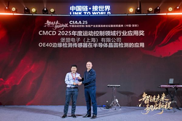 在近期落幕的“智鏈未來?韌啟新程”CIA A25 中國運動控制/直驅產業發展高峰論壇暨頒獎盛典(深圳站)上,堡盟電子(上海)有限公司憑借OE40邊緣檢測傳感器在半導體晶圓檢測的應用,成功摘得CMCD 2025年...